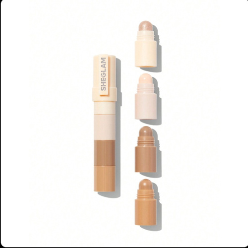 - دارای هایلایتر براق، هایلایتر مات، کانتور و برنزر در یک قلم
